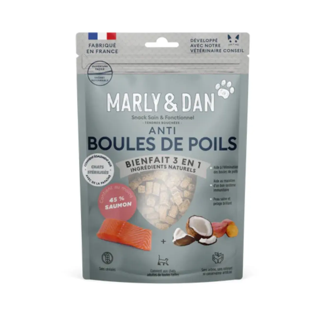 Snack naturel en forme de bouchées qui aide à prévenir la formation des boules de poils grâce aux propriétés de l’enzyme de papaïne. A base de saumon et d’ingrédients naturels pour aider à soutenir le métabolisme de votre chat.